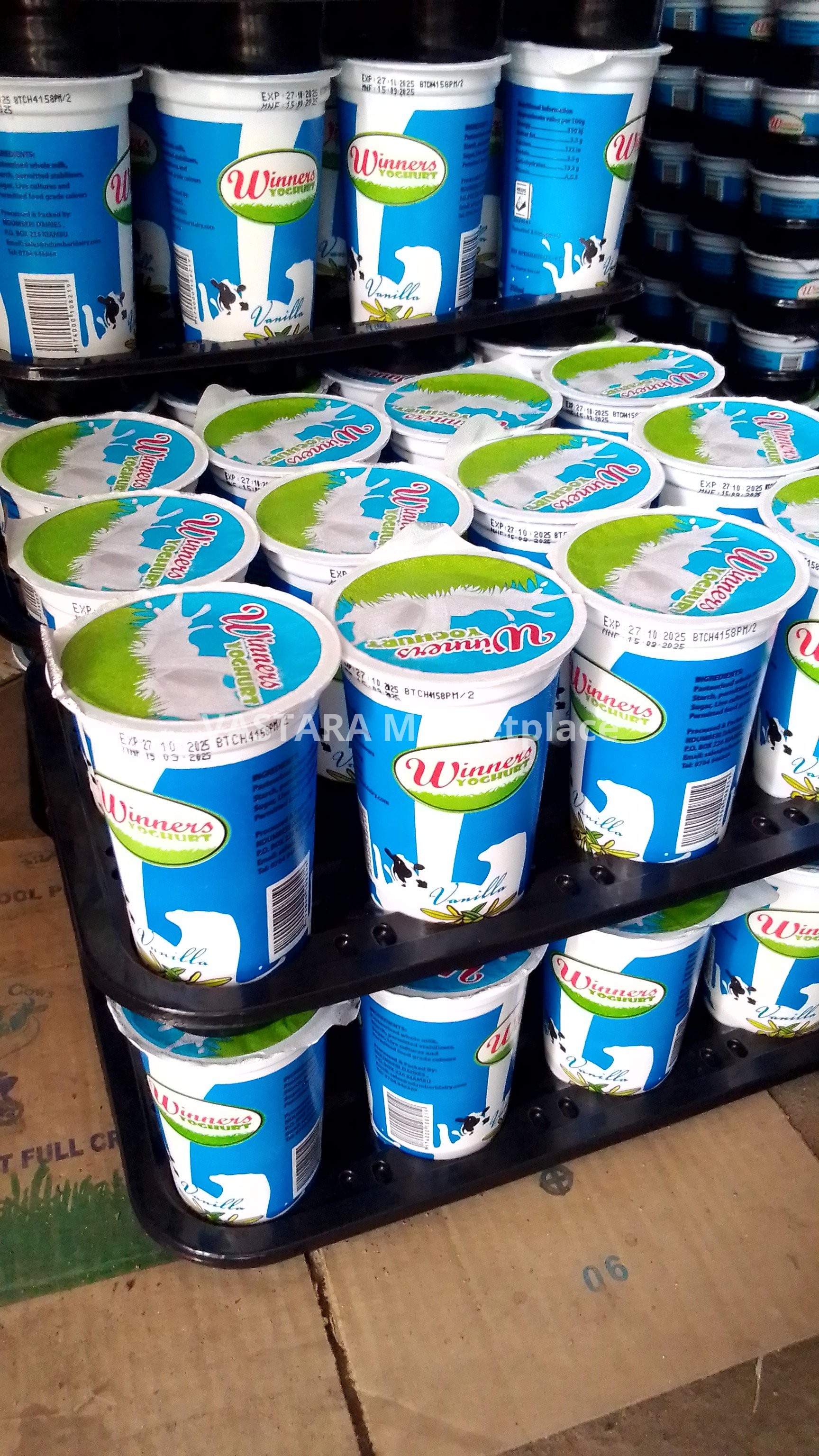 A tray of Winners yoghurt 250ml vanilla